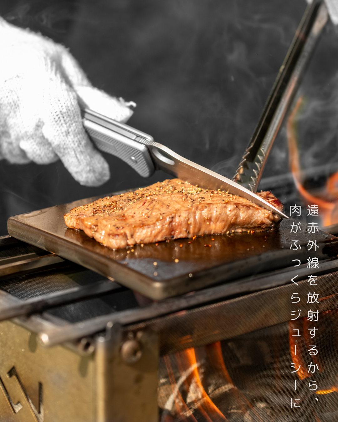 ローストウバンは熱せられることで遠赤外線を放射し、料理をふっくらジューシーに仕上げます。また、鉄板よりも圧倒的に保温効果が高いため、しばらくの間は料理を熱々のままでいただくことができます。