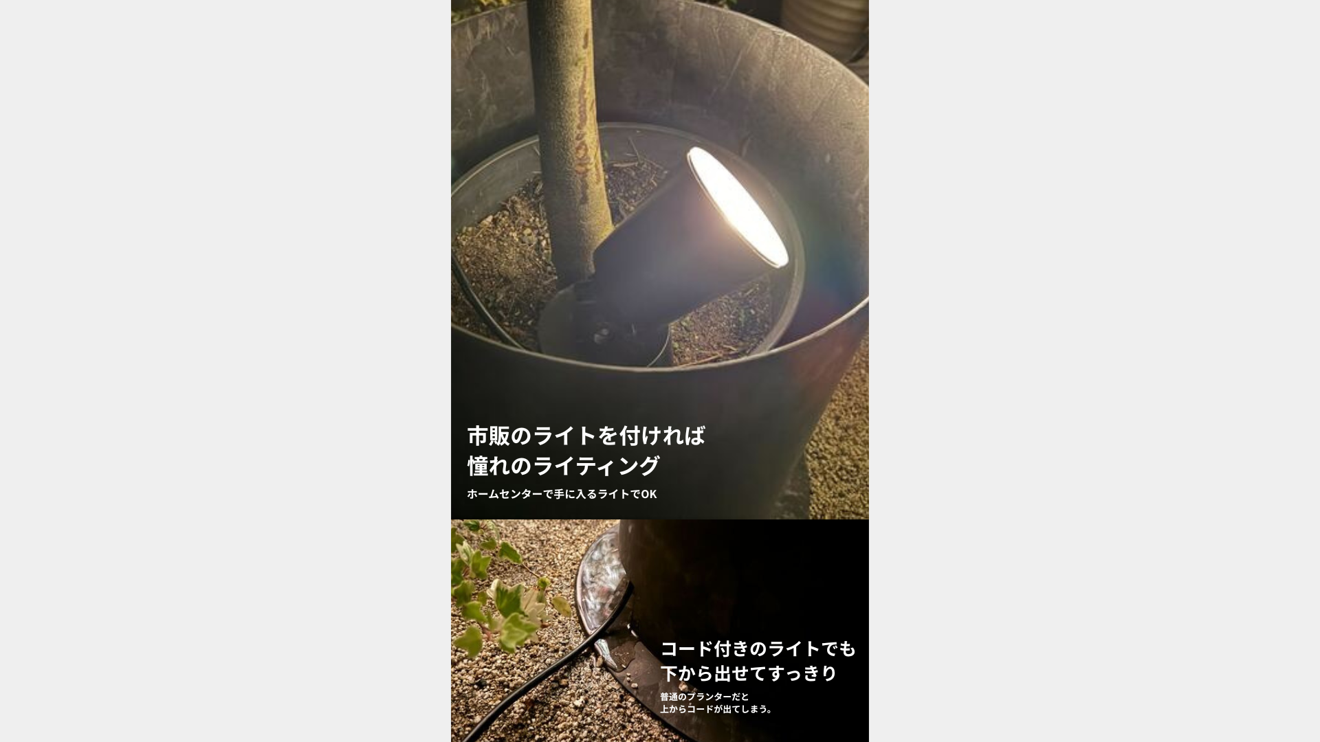 ・直射日光が強く当たる場所では本体が高温になる場合があります。植物への影響が気になる場合は、遮光や日陰でのご使用をご検討ください。