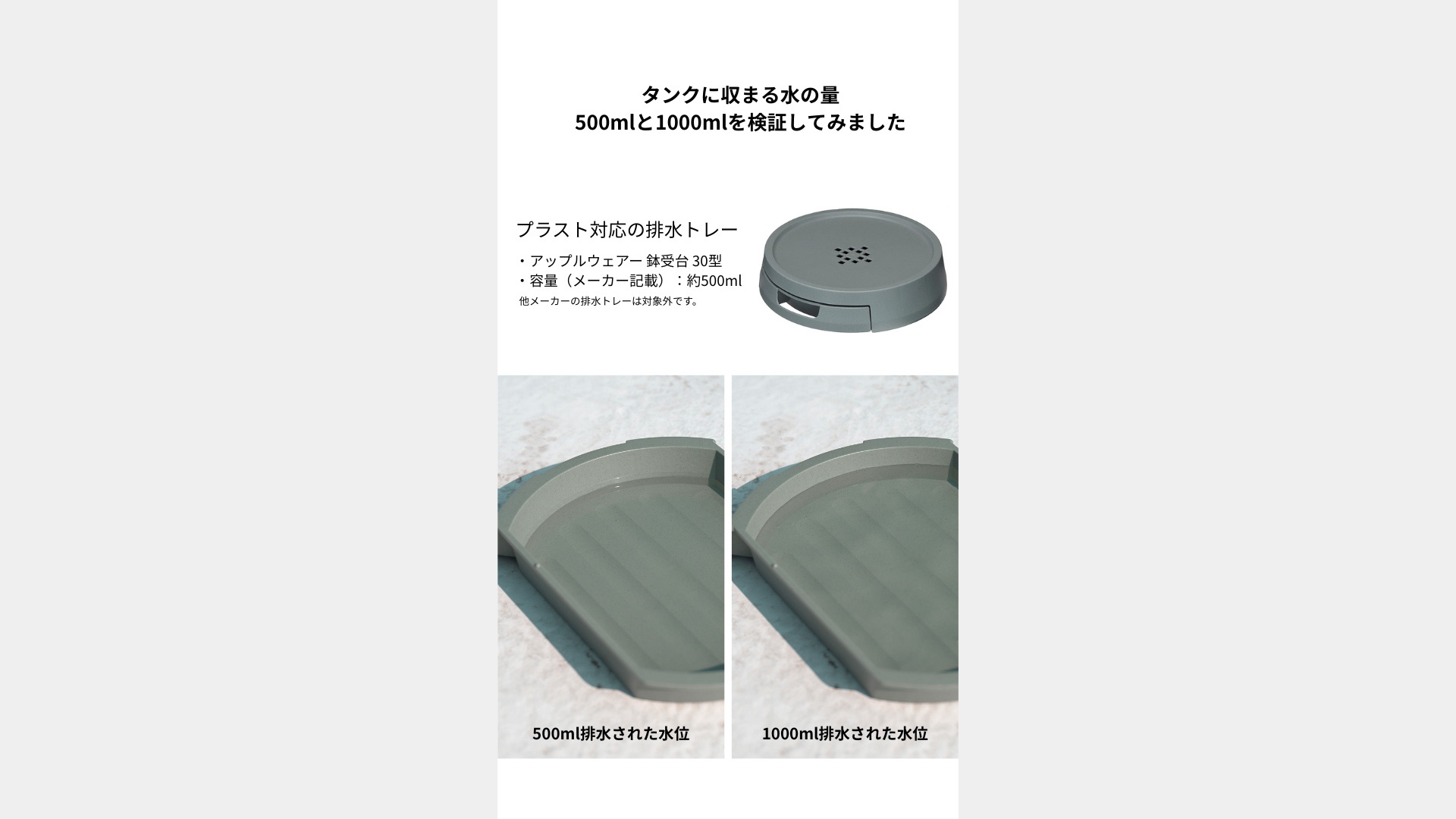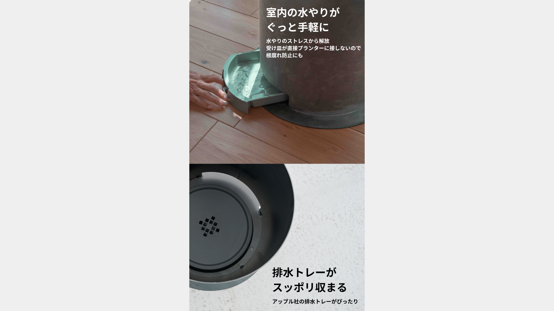 ・10号サイズには、オプションで引出し式排水トレーを追加できます。水やり後に鉢底から流れた水を一時的に受け止めることができ、室内使用時の利便性が向上します。水の入れすぎや排水量が多い場合はあふれる可能性があります。定期的にトレー内の水を捨てるなど、排水管理にご注意ください。